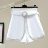 Pantalones cortos de traje con incrustaciones de diamantes con cuentas Pantalones anchos de cintura alta elegantes para mujer