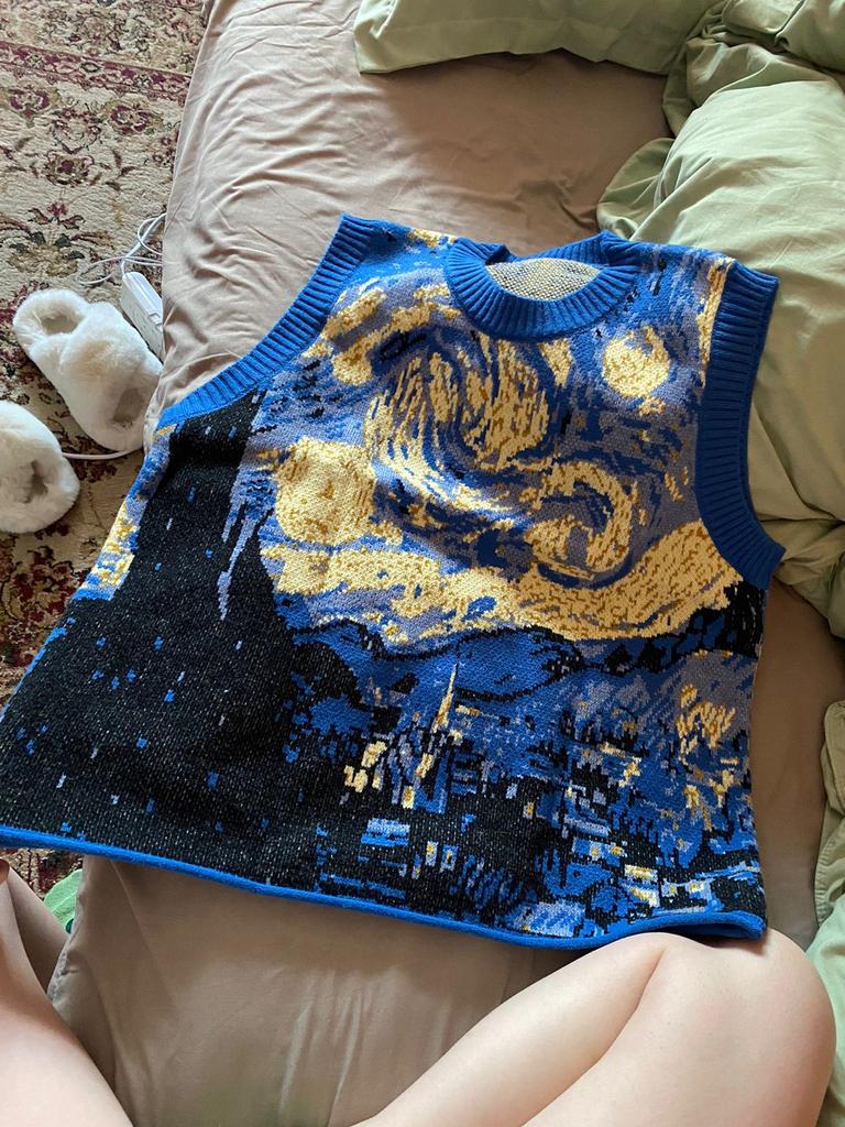 DIMANAF 2023 nuevo chaleco de talla grande de otoño para mujer, suéteres con estampado de patrones, suéter holgado de estilo informal básico azul de gran tamaño a la moda