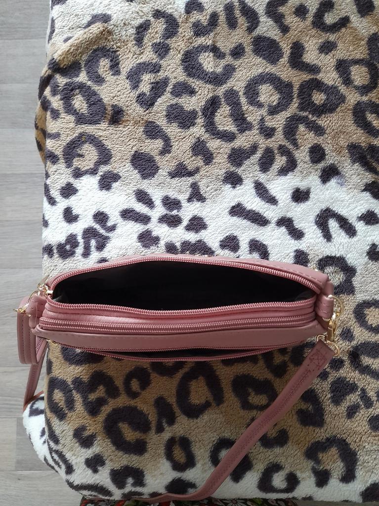 Genial bolso rosa polvoriento. Tiene 4 bolsillos, algo raro hoy en día, todos los bolsillos están forrados. Correa ajustable. Herrajes de alta calidad, color dorado. Un bolso fresquito para el verano, lo recomiendo.