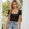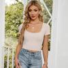 HNXC Blusas y camisas de cuello cuadrado de manga corta con estampado de Color sólido informal de verano a la moda para mujer