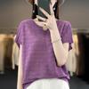 Camiseta de verano para mujer, pantalón corto informal holgado, Top de punto de seda de hielo holgado de Color sólido con manga