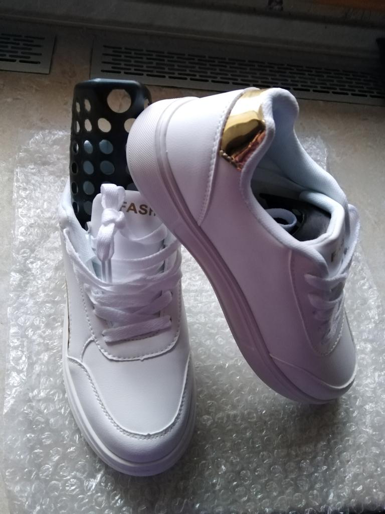 Zapatillas blancas de la tienda TUINANLE. Inmediatamente notaré que las cinco estrellas ⭐ son para el servicio de soporte.. Las zapatillas en sí son muy lindas. Se ajustan perfectamente a las piernas. Combinan bien tanto con jeans como con varios vestidos.. Ligero, no se siente en las piernas.. Tenía muchas ganas de ver estas zapatillas, pero no tuve suerte 😭. Las zapatillas vinieron con defecto 😭😭😭 Decir que estaba molesto es quedarse corto.. Por supuesto, recurrió a la empresa conjunta con el problema.. Para mi 39 pedí una talla más, pero fue en vano... Las zapatillas son pequeñas. Si no fuera por la escasez, les habría encontrado un nuevo dueño, y sí... 😢 Si te sirvió la información ponla como favorita ❤️😘 Recibí la mercancía en 36 días en un paquete combinado 🚚 La pista fue rastreada completamente.. La llegada al punto de emisión fue anunciada por sms 📲. Embalaje: paquete postal normal y embalaje individual (zip-pack). Las zapatillas también estaban envueltas en plástico de burbujas.. Compras felices y entregas rápidas para todos 🛍️☺️🚀🌸