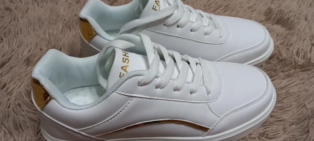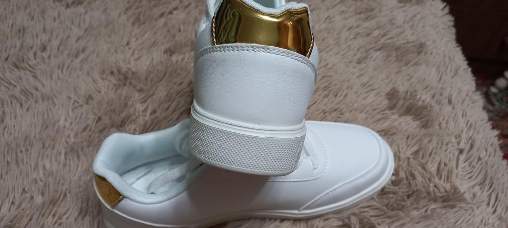 Producto muy muy bonito. Buen tamaño. El dorado le da un efecto muy elegante a estos magníficos tenis. Zapatos de muy alta calidad. Muchas gracias por el embalaje y el regulador. Muchas gracias👍al vendedor. Gracias Joom por ofrecer estos tenis.