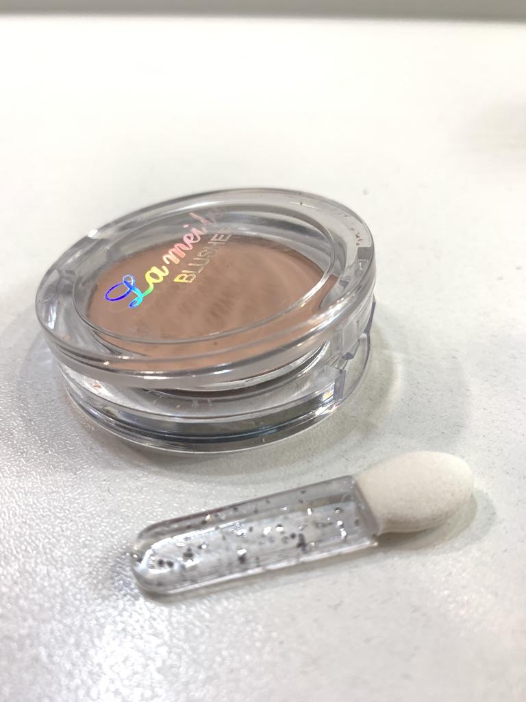 Rubor frío. Aguantan sorprendentemente bien, incluso con el calor. Se incluía un pincel para sombra de ojos.