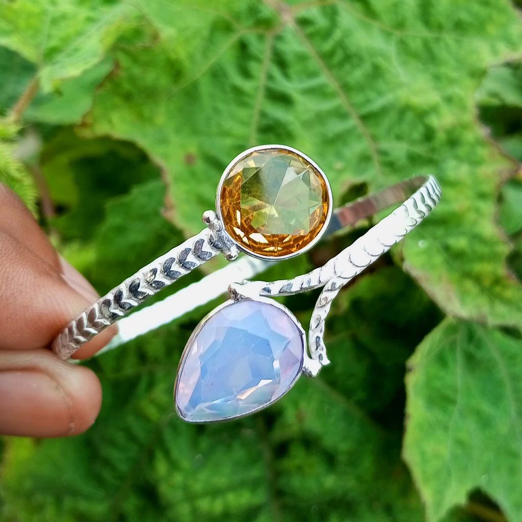 Brazalete/pulsera unisex ajustable chapada en plata de ley 925 con piedras preciosas de cristal facetado