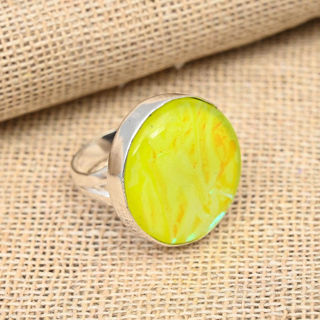 Anillo de plata de ley 925 con piedra preciosa de ópalo triplete australiano amarillo hecho a mano
