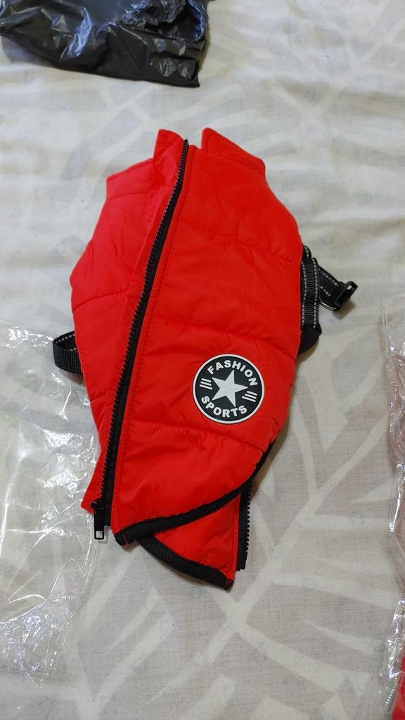 Muy bonita, pero tuve que comprar 3 antes de encontrar la talla correcta, a pesar de las medidas y esta vez, esta chaqueta de plumas le quedará bien a mi bulldog 👍😍