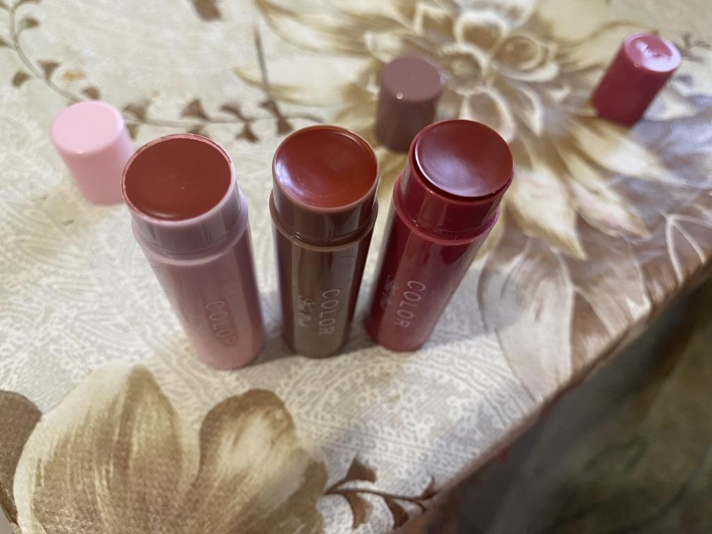 Estoy muy satisfecha con los bálsamos, son resistentes. Desde el principio queda un poco coloreado pero luego le da a los labios un color rosado natural.