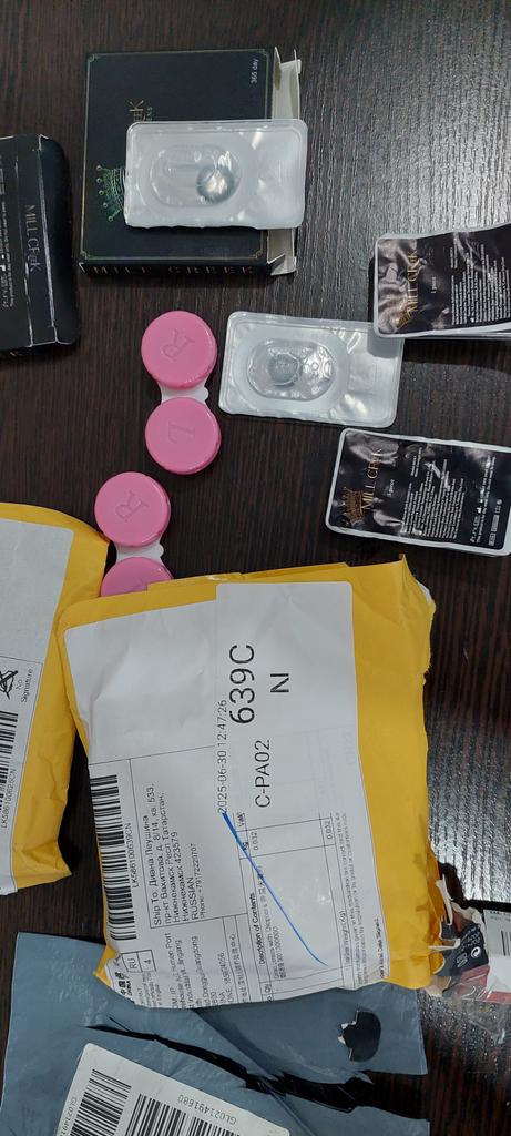 Ordené el 20 de mayo, el producto llegó el 5 de junio. Embalaje muy bonito: cada lente en una caja separada, también enviaron un contenedor de almacenamiento. La puntuación para los ojos marrones es -2,5. Cubre bien el color, pero mi color natural todavía es visible cerca de la pupila (no es crítico, si no miras con atención); ¡No hay ninguna imagen borrosa! Es cómodo de llevar, pero dudo que dure mucho tiempo (no más de 3-4 horas). En general satisfecho. Recomiendo el producto)