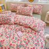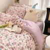 Juego de cuatro piezas de algodón puro de 60 hilos, cama gruesa de algodón puro, juego de tres piezas, algodón de fibra larga, funda de edredón pequeña y fresca, sábana ajustable