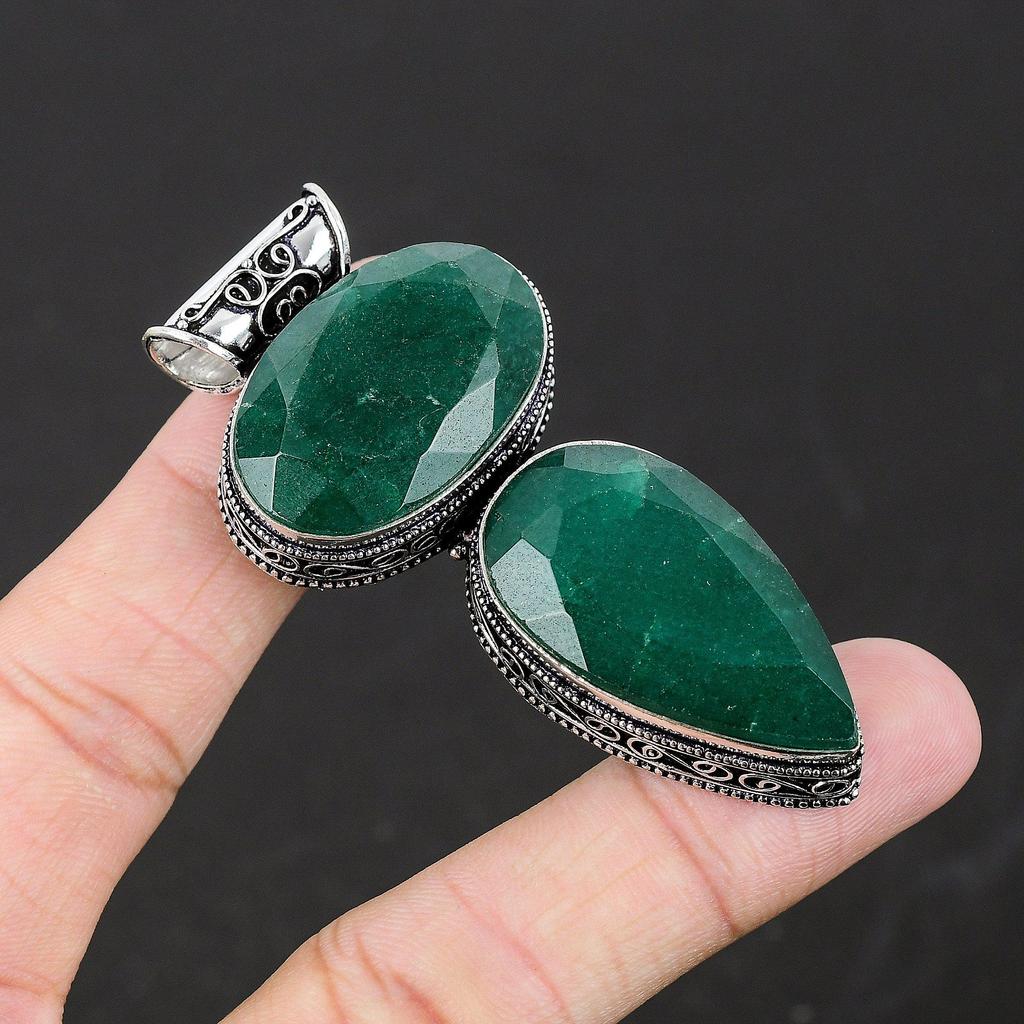 🌟 Colgante de Joyería de Plata de Ley 925 Hecho a Mano con Gema Esmeralda Colgante de Doble Gema Esmeralda Collar Regalos Para Mujeres 🌟