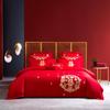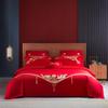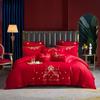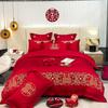 Juego de cuatro piezas con bordado de boda, ropa de cama roja para edredón de boda, funda de edredón para boda, ropa de cama para recién casados, juego de seis piezas de jade rosa para boda