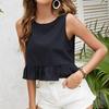 JKAASHDK Blusas y camisas sin mangas con cuello redondo y estampado de color sólido para mujer