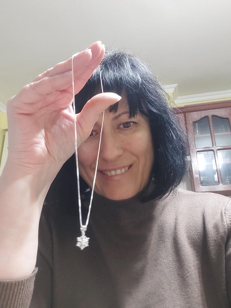 El colgantito es pequeño y lindo. ¡Gracias a todos! ¡PAZ y entendimiento mutuo!!!