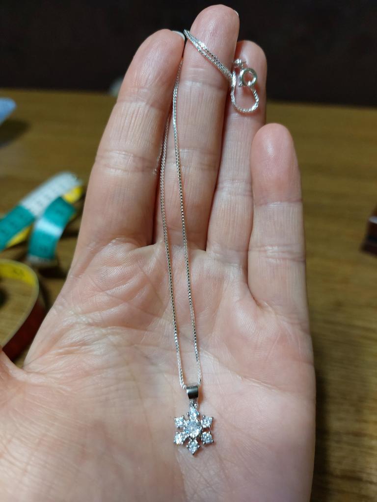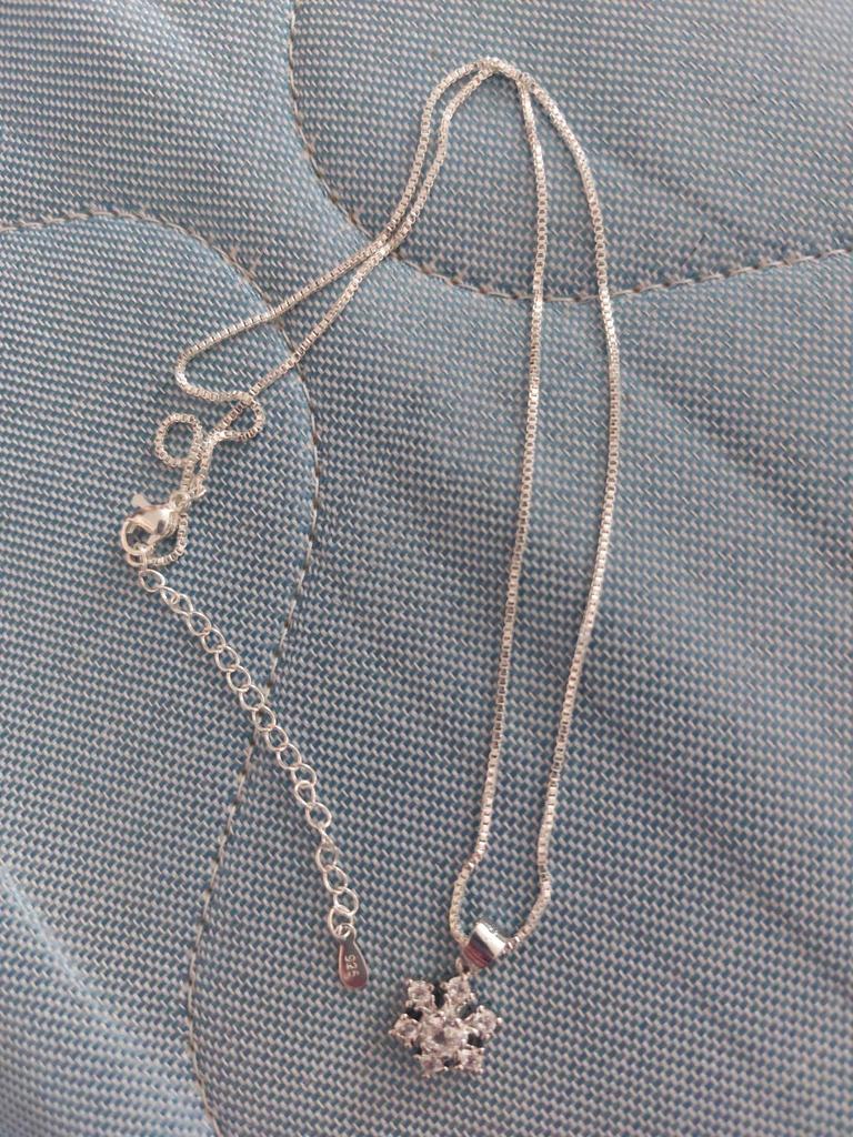 Colgante copo de nieve ❄ con cadena La decoración es de acero inoxidable, aunque la cadena en sí es 925.. La calidad es excelente, el colgante es miniatura, está elegantemente hecho, se ve hermoso y es adecuado tanto para niñas como para amantes de la moda.. Longitud de la cadena 45 cm, además hay eslabones adicionales para aumentar la longitud.