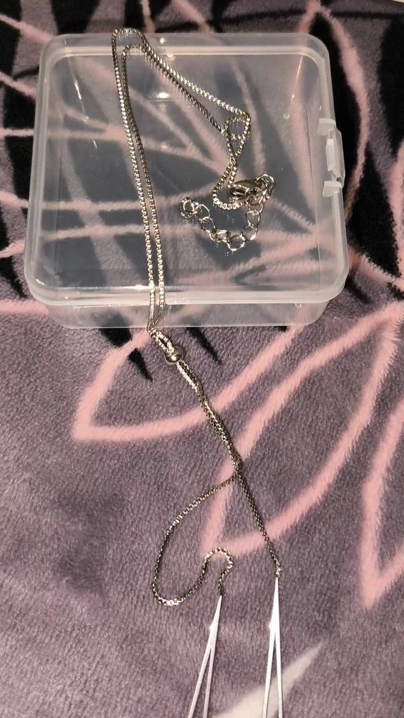 El collar es muy delicado. La longitud se cambia con la cuenta central. Para una blusa/vestido ligero es muy bonito y elegante.