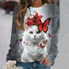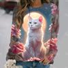 Camiseta Kawaii para mujer, camiseta divertida con estampado de gato, camiseta de manga larga, ropa de calle informal, suéter para mujer, nuevo jersey para mujer, ropa, Top