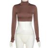 Camiseta corta de cuello alto liso a la moda para mujer, camiseta interior básica ajustada informal elástica de otoño para mujer, ropa de calle elegante Tess 30385