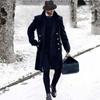 Hombres Otoño Invierno Abrigo Doble Botonadura Cuello Vuelto Color Sólido Grueso Longitud Media Cálida Ropa De Calle Con Bolsillos Cárdigan Hombres Gabardina