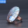 Anillo Ajustable de Cobre Vintage Hecho a Mano con Envoltura de Alambre Redondo Árbol de la Vida de Cristal Natural