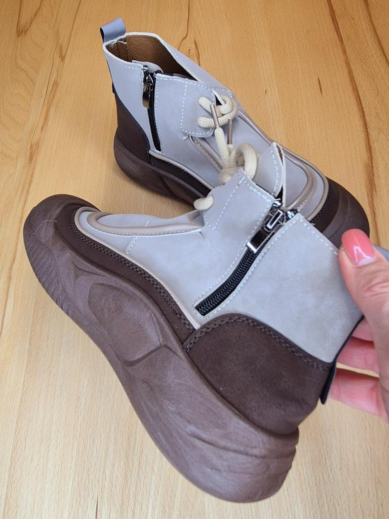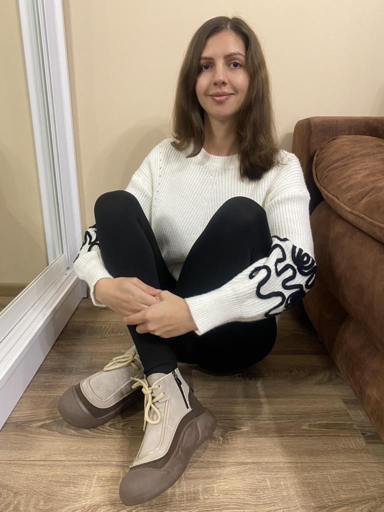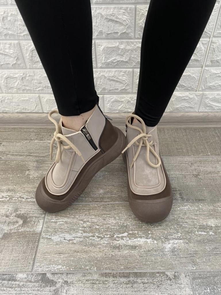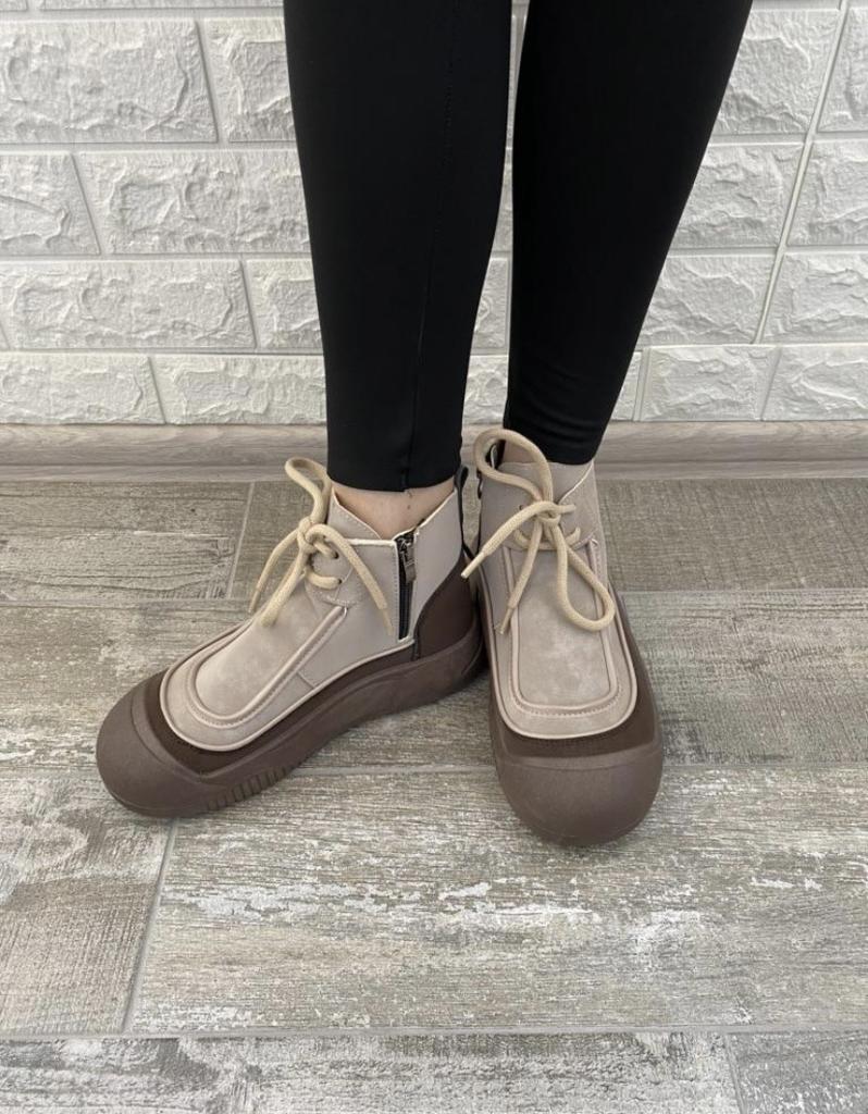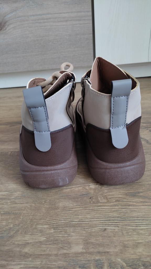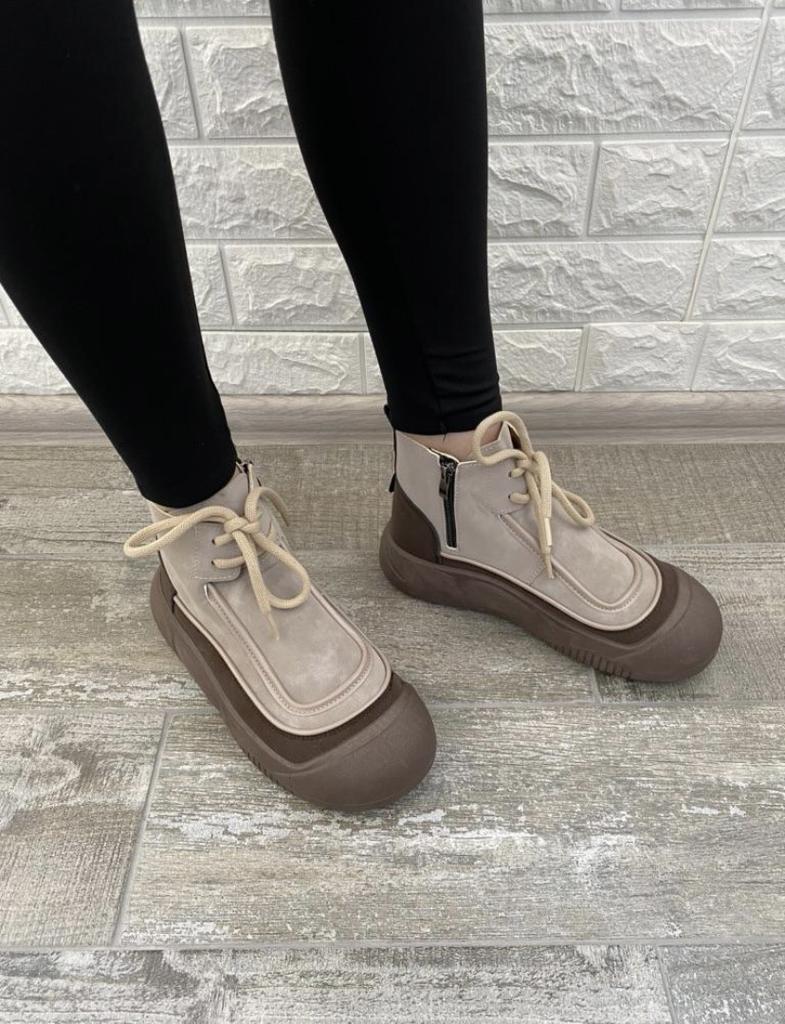 Zapatos con los que puedas caminar en tiempo húmedo.. Elegante y práctico . Diseñado para otoño y primavera.. Son agradables al tacto y los pies se sienten cómodos con ellos.. Recomiendo especialmente echar un vistazo más de cerca a estos zapatos para quienes tienen perros. Si el clima está húmedo, estos son excelentes zapatos porque tus pies estarán secos.. Tomé la talla 36 para mi 36. Si tienes el pie ancho, lo más probable es que te cueste entrar en la pierna.. Hay un cordón, pero no se estira mucho.. Se atan a una serpiente en el costado.. La calidad es excelente ♥️ Me gustó el diseño, inusual 👍