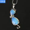 European And American Personality Amethyst Necklace Animal Cat Abstract Inlaid Natural Stone Pendant