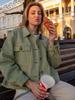 Abrigo vaquero de moda para mujer Abrigo vaquero de manga larga Chaqueta con costura y estampado de leopardo para mujer