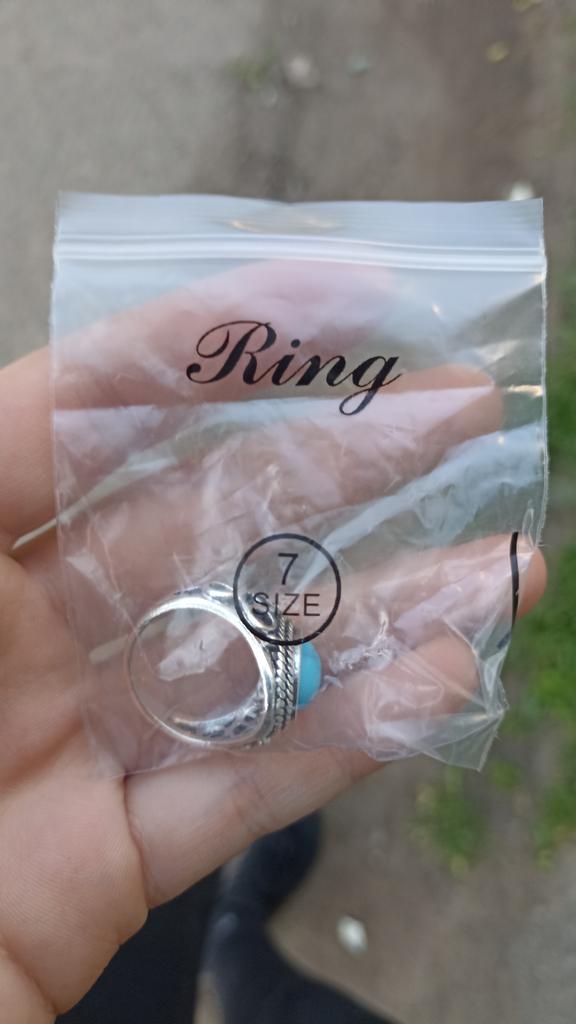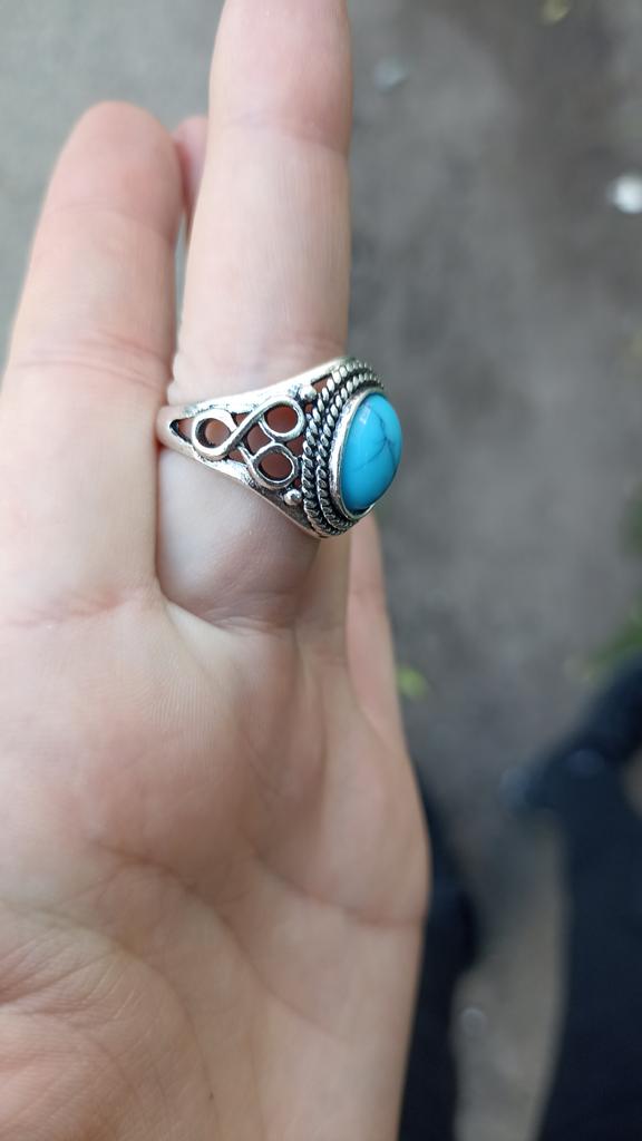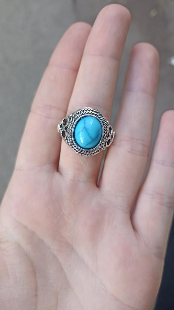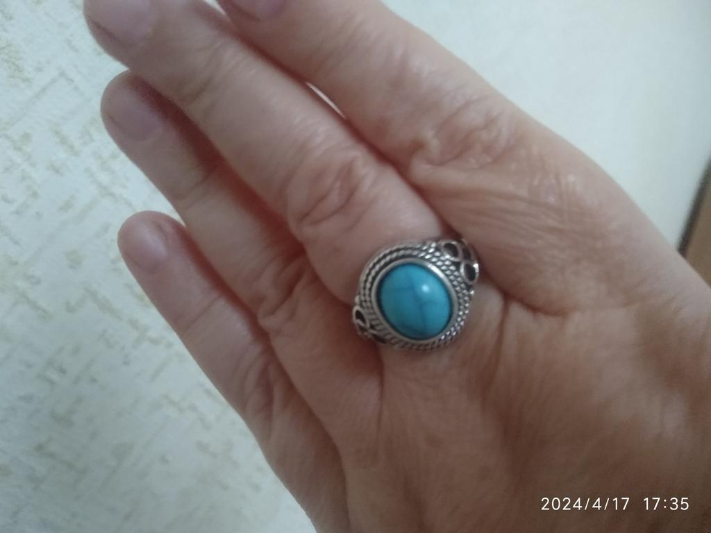 Un hermoso anillo. Se ve bien. Se puede usar como joyería). Parece turquesa, pero creo que es una imitación. No sé cómo se usará. La entrega es muy rápida. )))