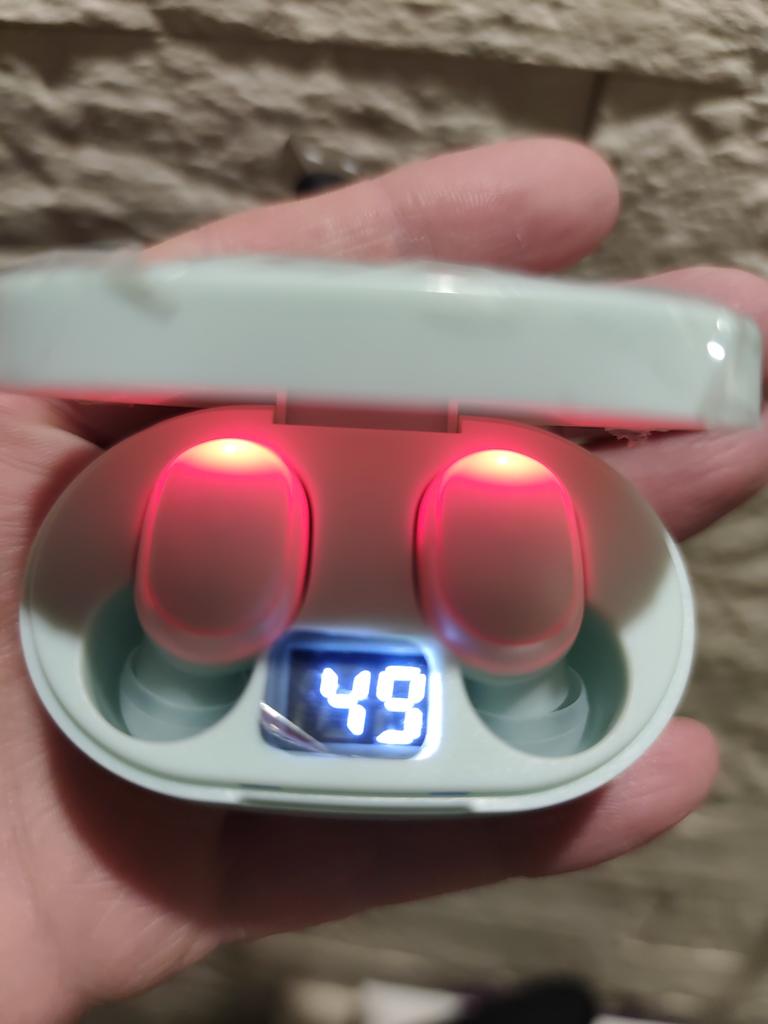 Quería unos auriculares inusuales, así que pedí este color, llegaron en aproximadamente un mes, lo cual es bastante largo para Joom, al principio no pude entenderlos muy bien porque la cosa negra donde se muestran los porcentajes de carga no se ilumina, ese es su único -, pero por lo demás funcionan, la carga dura mucho, son cómodos, no se caen, y la cosa negra no afecta nada, simplemente no se ilumina, por eso los recomiendo.