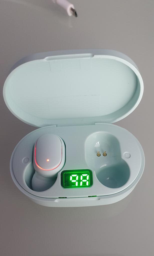 Auriculares inalámbricos económicos TWS E6S Corresponde a la descripción Llegó intacto y en funcionamiento. El sonido está bien por un precio tan bajo.. Elegí turquesa, en realidad un tono más delicado.. Incluye caja con auriculares, además de cable de carga.. Versión de Bluetooth: 5.0 Distancia de trabajo: unos 10 m Capacidad de la batería de los auriculares 450 mAh. Capacidad de la batería del compartimento de carga: 2200 mAh. Nivel impermeable: IPX5 Tiempo de reproducción de música: aproximadamente 4 horas