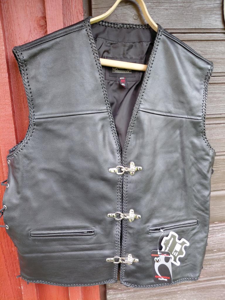 Chaleco de cuero para hombre para chaleco trenzado de motocicleta con ganchos de metal