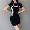 Minifalda de manga corta, estilo deportivo callejero de moda, vestido de color contrastante, estilo nuevo de verano, cintura falsa con dos huecos, corte A adelgazante