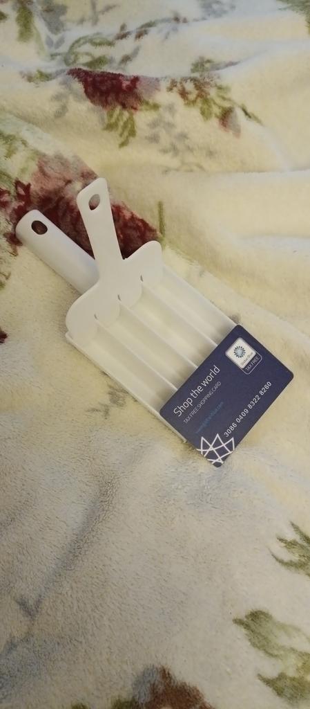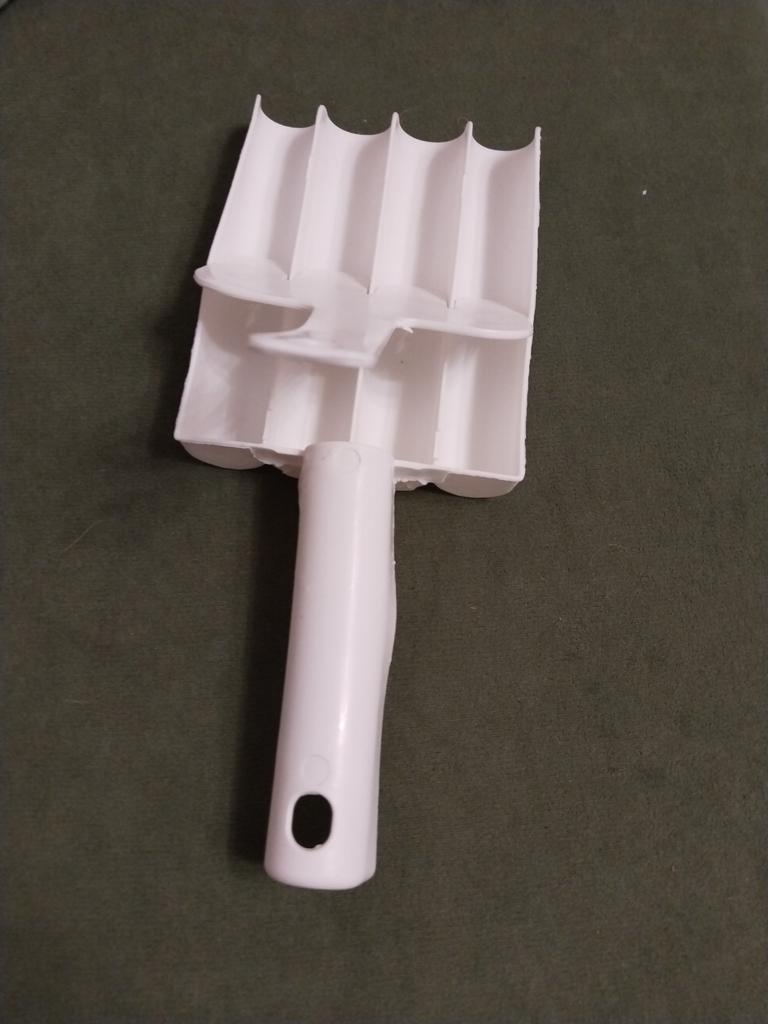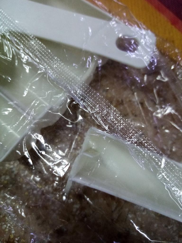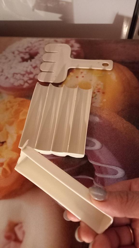 Una pequeña "cuchara", del ancho de una tarjeta bancaria, pero no necesité más. El plástico parece normal, no hay nada especial que romper aquí. Te vendrá muy bien para facilitar las tareas de la cocina.