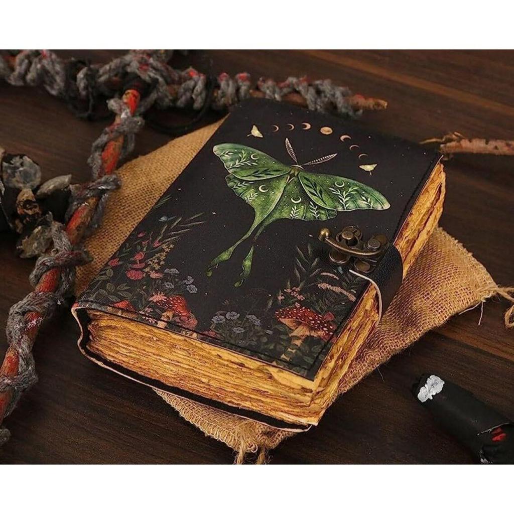 Diario hecho a mano de cuero Mariposa Impreso Oficina y uso personal Planificador de viajes Artista Cuaderno de bocetos sin reglas Diario de escritura con candado C