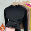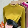 Top cálido de terciopelo integrado para mujer, jersey ajustado de felpa gruesa, camisa inferior con cuello medio alto, desplazamientos informales simples para Otoño e Invierno