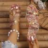 Verano Nuevo Talla Grande Sandalias Estampadas con Tacones Inclinados, Grafiti para Aumentar la Altura, Zapatillas de Playa para Mujer