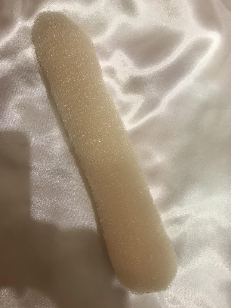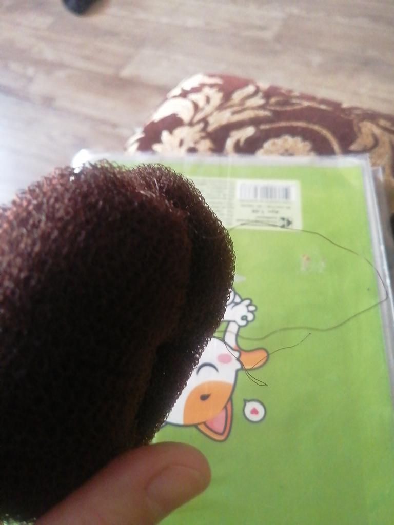 Un trozo de espuma con broches cosidos burdamente. No se sujeta muy bien al cabello.