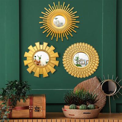 3 Piezas Decoración de Espejo de Flor Redondo Decoración Bohemia Arte Espejos Dorados de Luz Solar Baño Dorado Sala de Estar