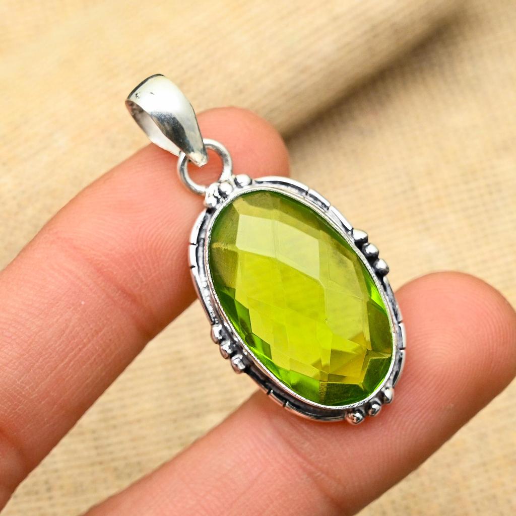 Colgante de peridoto glorioso hecho a mano en plata de ley 925 maciza para mujer