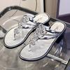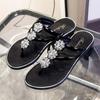 Sandalias elegantes con flores de diamantes de imitación para mujer: cómodas chanclas de playa con tacón plano, chanclas informales de PVC para todas las estaciones