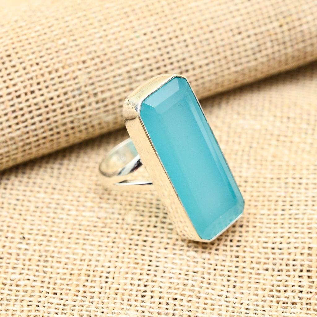 Gema Calcedonia Azul Hecho a Mano Joyería de Plata de Ley 925 Anillo Asombroso Para Ella