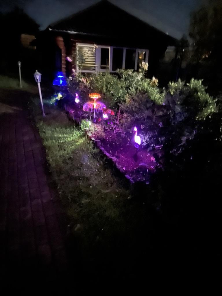 ¡Una decoración muy chula para un jardín! Llegó rápidamente. ¡Todo funciona! Ordenaré más. En mi teléfono la cámara no transmite una imagen precisa, en la vida es mucho más genial. Y cuando está completamente oscuro, indescriptible...