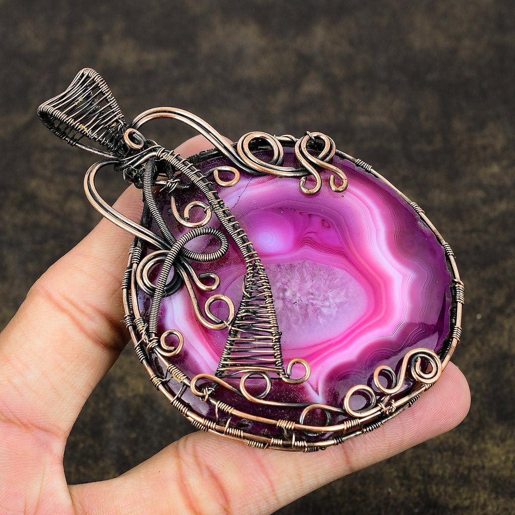 Natural Solar Quartz Gemstone Handmade Copper Wire Wrap Pendant 3.94 D5j05