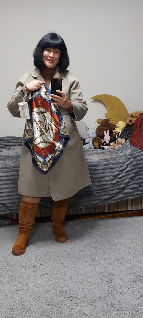 Me gustó mucho el abrigo, elegí un color neutro, es del vendedor sin nombre, corresponde a la foto promocional, talla 3XL. El tamaño se ajusta a mis parámetros.: Hombros 40 cm Altura 98cm Desde 84cm Aproximadamente 110cm Altura 162cm. La tela se ve decente, cara, no delgada, rígida, mantiene su forma, bien cocida al vapor, no se arruga. Composición: 65% terciopelo 35% fibra de poliéster El abrigo es cálido y cómodo, pero no es tan fácil de poner, 😁 porque no tiene forro y no se desliza sobre la ropa, pero no es un problema tan grande. , simplemente lleva más tiempo😊🙃. Estoy muy satisfecho con el abrigo, lo recomiendo, gracias, gracias al vendedor por un producto de calidad.. PD: el vendedor puso un regalo (pañuelo de seda de 49×49 cm), además el abrigo venía con una percha en una funda de polietileno.