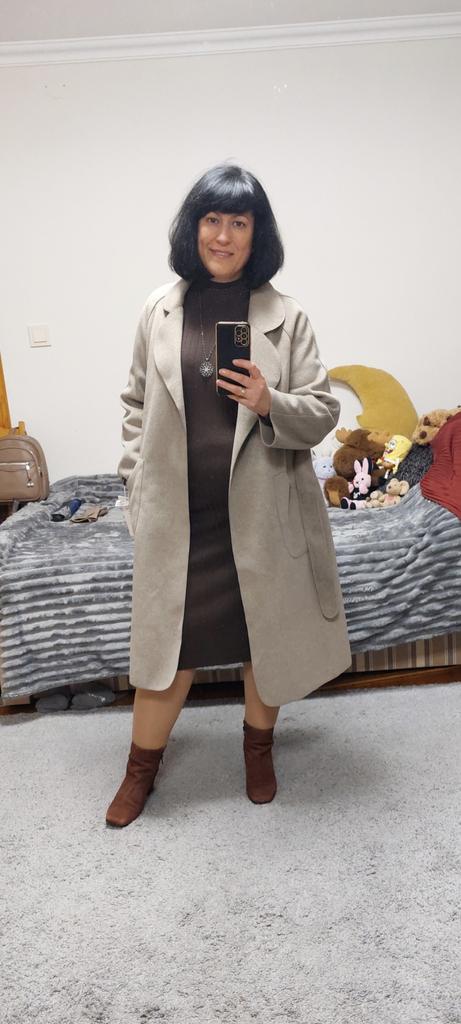 * abrigo de primavera de moda * 💥𝗟𝗶𝗲𝗳𝗲𝗿𝘇𝗲𝗶𝘁 2 semanas 💥𝗟𝗶𝗲𝗳𝗲𝗿𝘂𝗺𝗳𝗮𝗻𝗴 La entrega incluye 1 abrigo del color y talla correspondiente. Está disponible en varios colores diferentes en tallas S a XXXL.. Pedí el abrigo en talla L en color negro.. Me queda muy bien 👍 Normalmente uso una talla 36 a 38. Mido 172 cm.. Mis medidas 95-65-95 cm Se incluye un cinturón a juego fabricado con el mismo material.. 💥𝗤𝘂𝗮𝗹𝗶𝘁ä𝘁 El pelaje es suave y tierno.. La calidad es muy buena. La tela es muy cómoda y perfecta para otoño o primavera.. El abrigo tiene un hermoso cuello o solapa.. Hay dos bolsillos de parche para las manos en la parte delantera... no hay cremallera ni botones para cerrar el abrigo.. No es elastico. Encuentro el largo perfecto para mi altura de 172 cm. DE ACUERDO Para la composición del material : Desconocido 💥𝗙𝗮𝘇𝗶𝘁 Elegante abrigo de mujer para primavera u otoño, que resalta maravillosamente la cintura y, por lo tanto, la figura con un cinturón.. Gran material 👌 Pedí dos tallas más grandes porque seguí las medidas del fabricante y tomé una buena decisión.. ⭐⭐⭐⭐ Si mi reseña y mis fotografías te ayudaron con tu decisión de compra, me encantaría que me siguieras aquí en Joom para ver muchas más reseñas por venir. 🏃 📲🙏❤️