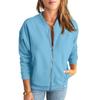 Sudadera casual para mujer Chaqueta con cremallera de color sólido Abrigo suelto de manga larga con bolsillo