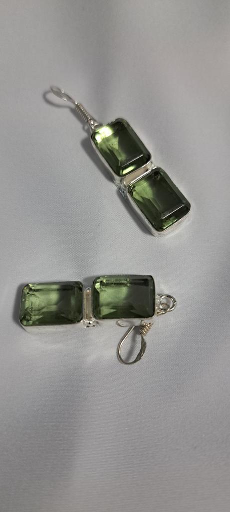 Pendiente de amatista verde natural, hecho a mano en plata de ley 925, 5 cm (h1B69)
