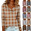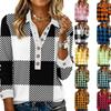 Blusa de manga larga con cuello en V a cuadros para primavera y otoño para mujer
