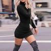 Women's Fashion High Neck Long Sleeve Knitted Bottoming Shirt Sexy Hip Wrap Dress
