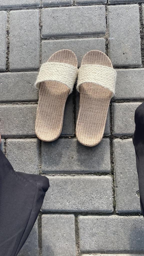 Hay algo mal con la talla de estas zapatillas, dice que 44-45 corresponde a una longitud de pie de 26-26,5 cm, mi longitud de pie es de 27 cm, pero 44-45 me quedan grandes en aproximadamente 1,5 cm, y deberían quedar justas, pero, bueno, me han servido para mi pie ancho. Por lo demás estoy satisfecha, para casa van muy bien, son buenas zapatillas, ligeras, que masajean el pie, en verano no dan calor.